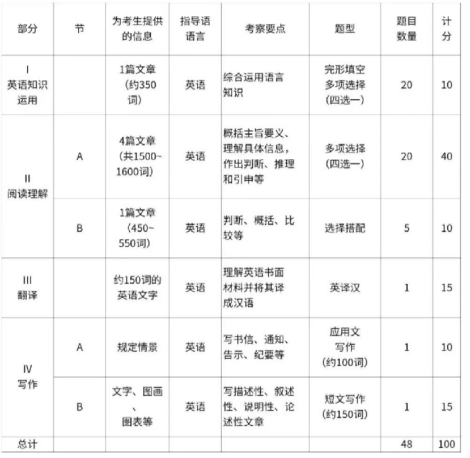 要求考生將長度約150詞的英語文字譯成漢 語,譯文準確、完整、通順。