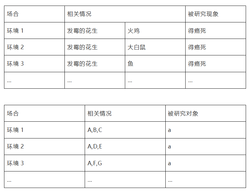 比如上述例子的結(jié)論要想成立,就必須要保證只有“吃發(fā)霉的花生”這一個(gè)共同情況,如果還有“都受過較強(qiáng)的核輻射”“都吃過大量的亞硝酸鹽”等共同情況,那么得癌癥死亡這結(jié)果就可能與發(fā)霉的花生無關(guān),而與輻射或亞硝酸鹽有關(guān)。